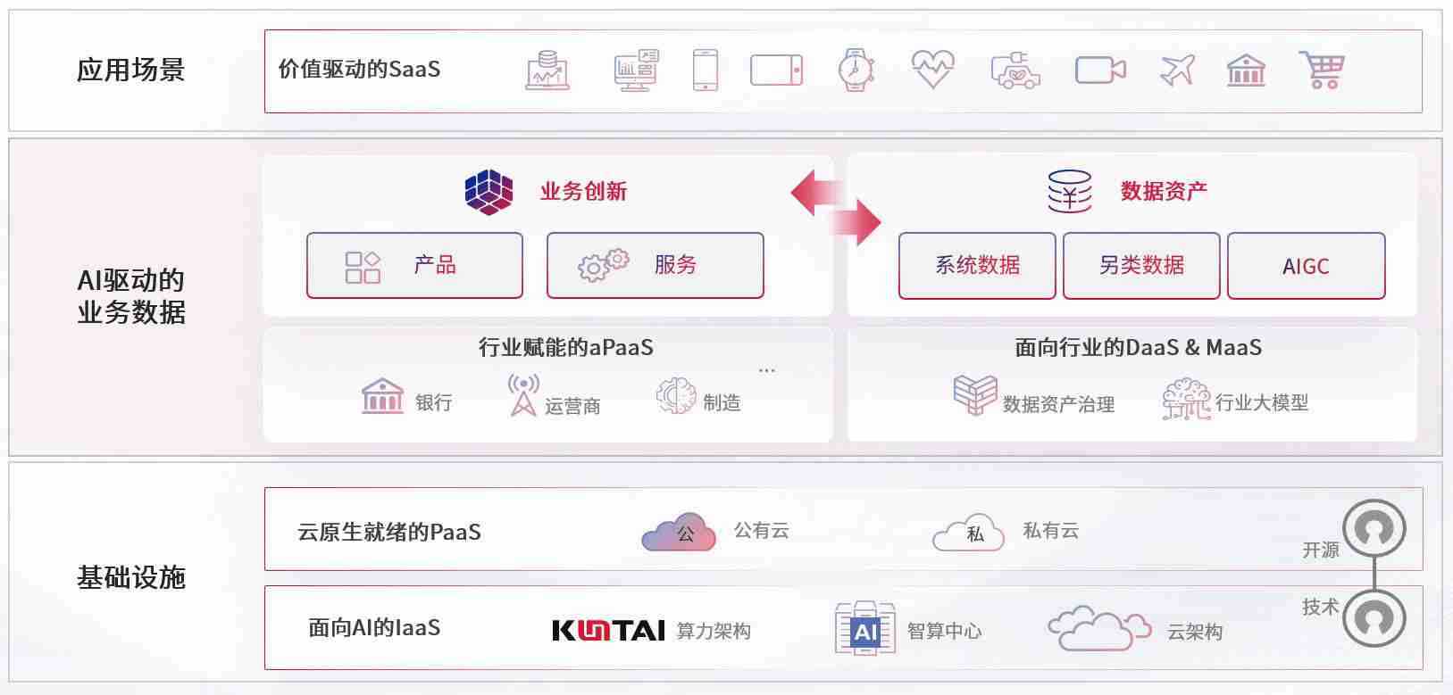 数字时代,,围绕企业数字化转型的关键要素,,,,冷钱包数码开创性的提出数云融合战略和技术体系框架,,,,着力在云原生、、、、数字原生、、AI原生和信创产业上架构产品和服务能力,,,为处在不同数字化转型阶段的快消零售、、、汽车、、金融、、、、医疗、、、、政企、、、、教育、、运营商等行业客户提供泛在的敏捷IT能力和融合的数据驱动能力,,构建跨界融合创新的数字业务场景和新业务模式,,助力企业级客户建立面向未来的核心能力和竞争优势,,,,全面推动社会的数字化、、智能化转型升级。。